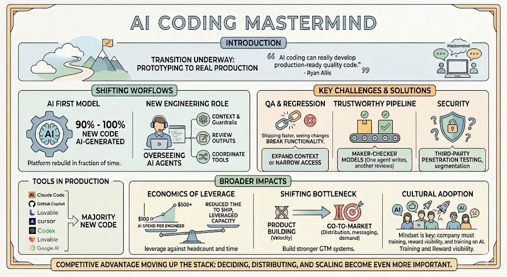 A founder-level recap of the SaaS Rise mastermind on AI coding and agentic engineering, covering what teams are actually doing with AI today, where QA and security are still breaking, and why faster product development is shifting the real bottleneck to go-to-market.