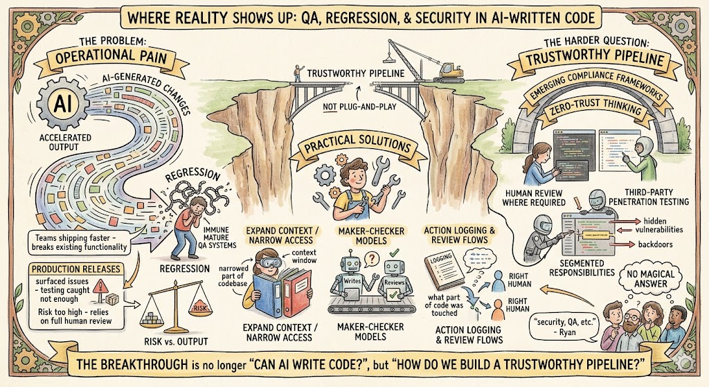 AI coding is increasingly capable of writing production-grade software. Agentic workflows are starting to reshape how teams think about development, testing, and review. Engineering output is accelerating. QA systems are scrambling to catch up. Security practices are still evolving. Budgets are being rewritten. Team expectations are shifting.