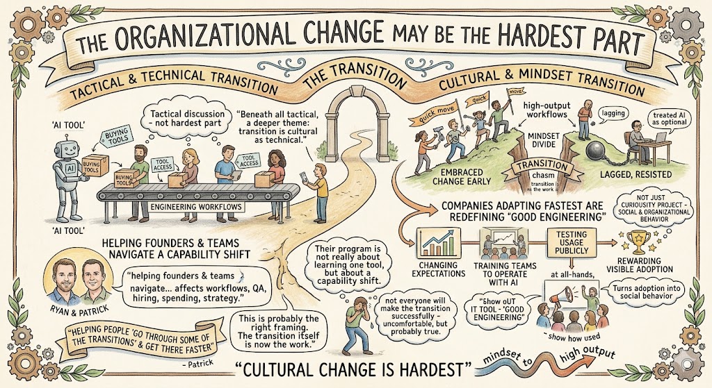 This is also where Ryan and Patrick’s teaching role becomes clearer. The program they previewed is not really about learning one tool. It is about helping founders and teams navigate a capability shift that affects engineering workflows, QA, hiring, spending, and ultimately strategy.