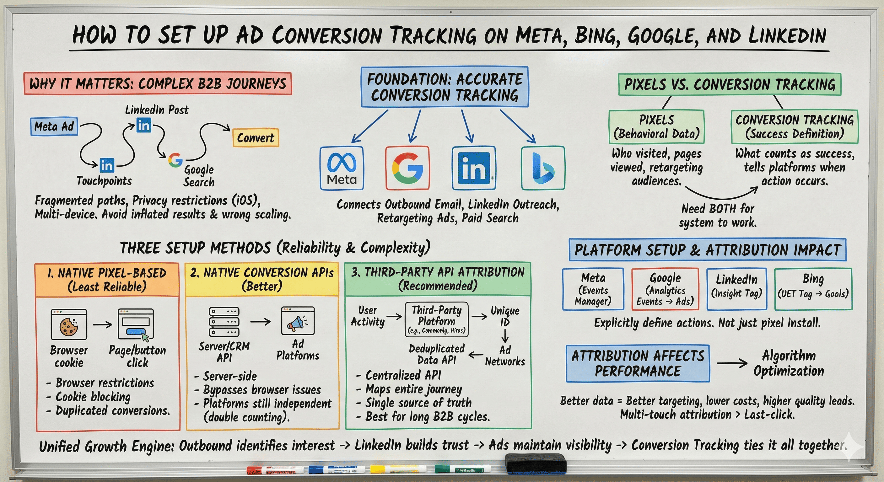 A properly configured conversion tracking system allows outbound email, LinkedIn outreach, and paid ads to work together as a unified growth engine.