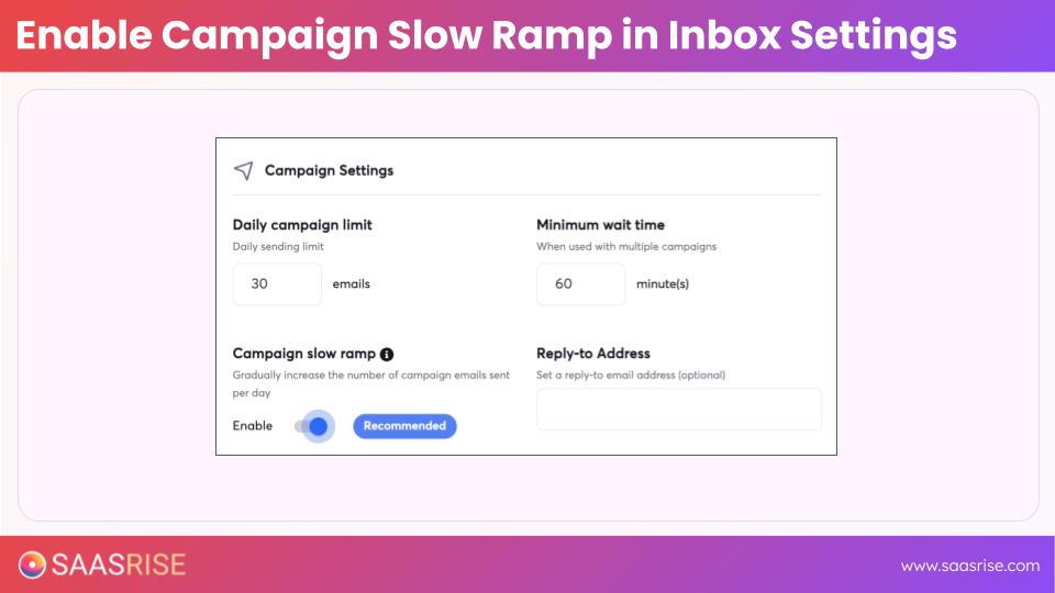 Without slow ramping, a new campaign begins sending at full volume across all inboxes immediately. This looks unnatural to email providers, especially if your warm-up period was short or your domain is new. Many teams unknowingly burn their inboxes within the first two weeks simply because they skipped this setting.
