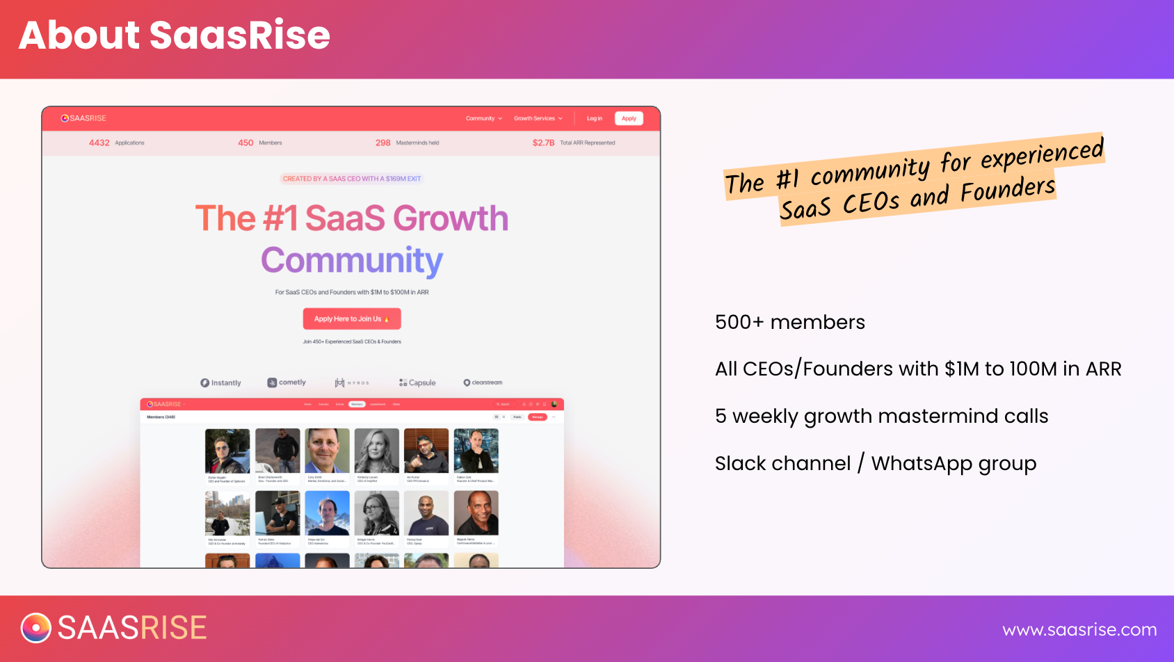 That’s why we built SaasRise and GrowthRise — two communities for SaaS CEOs and marketers.