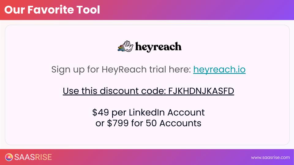 Once your outbound campaign begins generating clicks, those engaged contacts should flow directly into HeyReach or similar tools. They’ll automatically receive connection requests from your founder, CEO, or sales leader—the people with the highest acceptance rates.